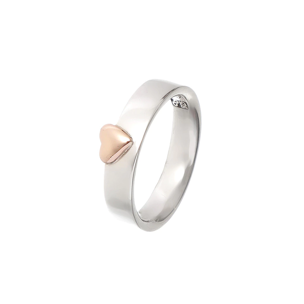 Confeccionado em prata 925, com acabamento polido o anel apresenta no topo um delicado coração de ouro rosa, que contrasta sutilmente com o brilho da prata, proporcionando uma combinação atemporal e sofisticada.