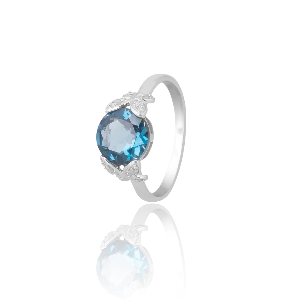 ANEL DE OURO BRANCO COM TOPÁZIO LONDON BLUE E DIAMANTES