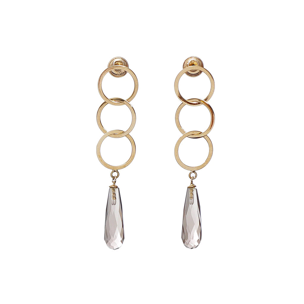 O brinco apresenta três elos delicadamente entrelaçados, culminando em uma deslumbrante gota de citrino fumê. Esta pedra preciosa, com seu tom quente e terroso, adiciona um toque de sofisticação e cor à peça, tornando-a perfeita para complementar qualquer look.