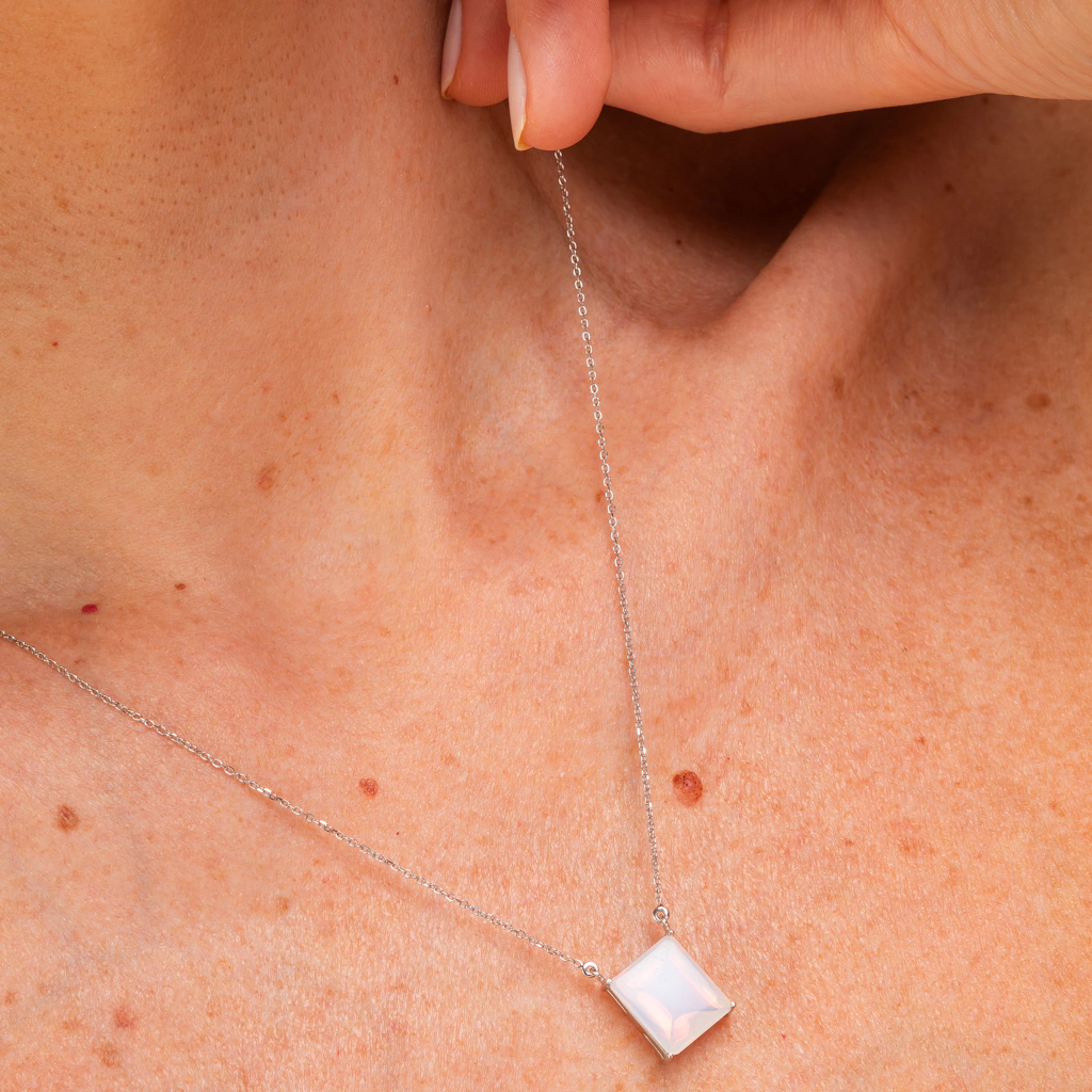 Escapulário de Ouro Branco 18k com Diamantes e Opala