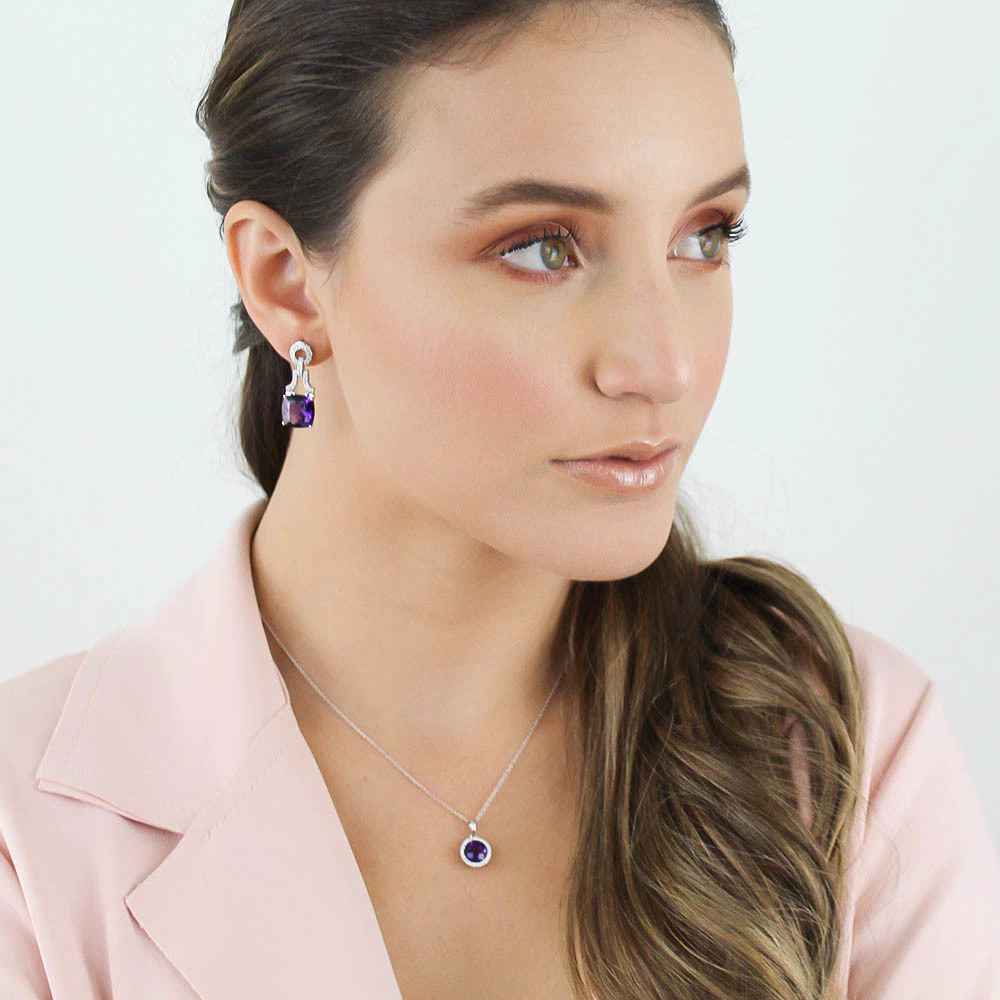 Que tal presentear a pessoa amada com esse pingente de ametista e diamante?