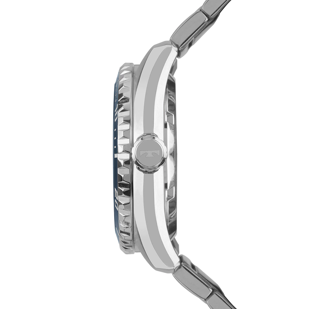 A caixa em aço inoxidável de 43 mm, a pulseira também em aço, o aro giratório unidirecional e o mostrador azul com efeitos luminescentes fazem desta peça uma companheira ideal tanto para mergulhos recreativos quanto para momentos de destaque.